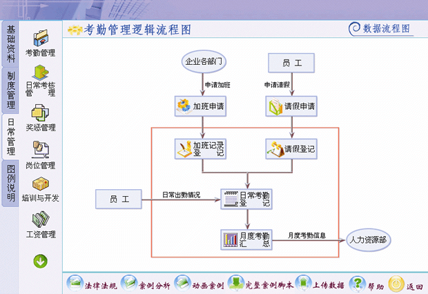 包括進行模擬企業的加班管理、請假管理以及企業員工的日??记诘怯浐徒y計。
