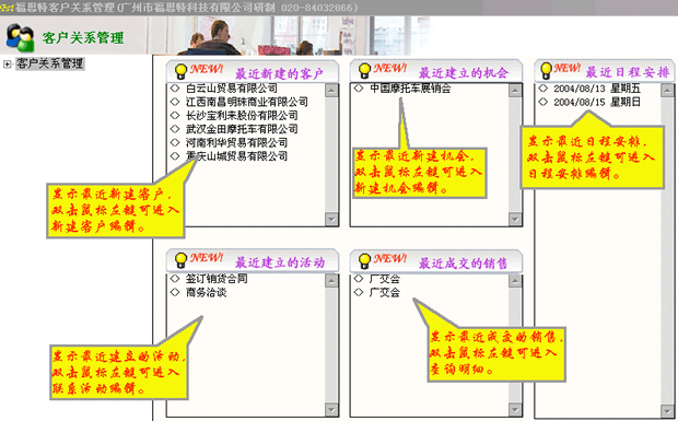 客戶關系管理系統是廣州市福思特科技有限公司提供的一套旨在改善企業和客戶之間關系的新型管理系統。通過向企業的銷售、市場和服務等部門提供全面和詳細的客戶資料來強化跟蹤服務、信息分析能力,使企業得以為用戶提供快捷和周到的服務、提高客戶滿意度,保持和吸引更多的客戶,增強客戶的忠誠度,從而提高企業的競爭力與贏利能力。